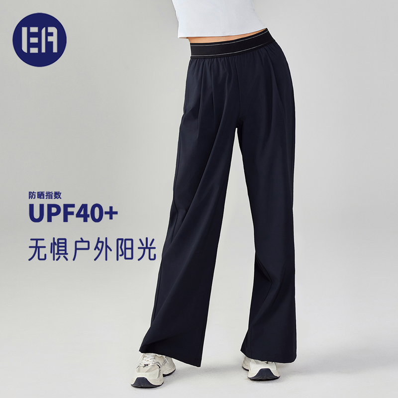 Esqua Athleisure梭織拼接專業訓練長褲女寬松直筒顯瘦運動長褲