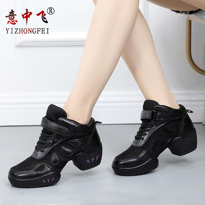 意中飛夏季真皮廣場舞鞋網面舞蹈鞋女軟底舞蹈靴水兵舞成人跳舞鞋