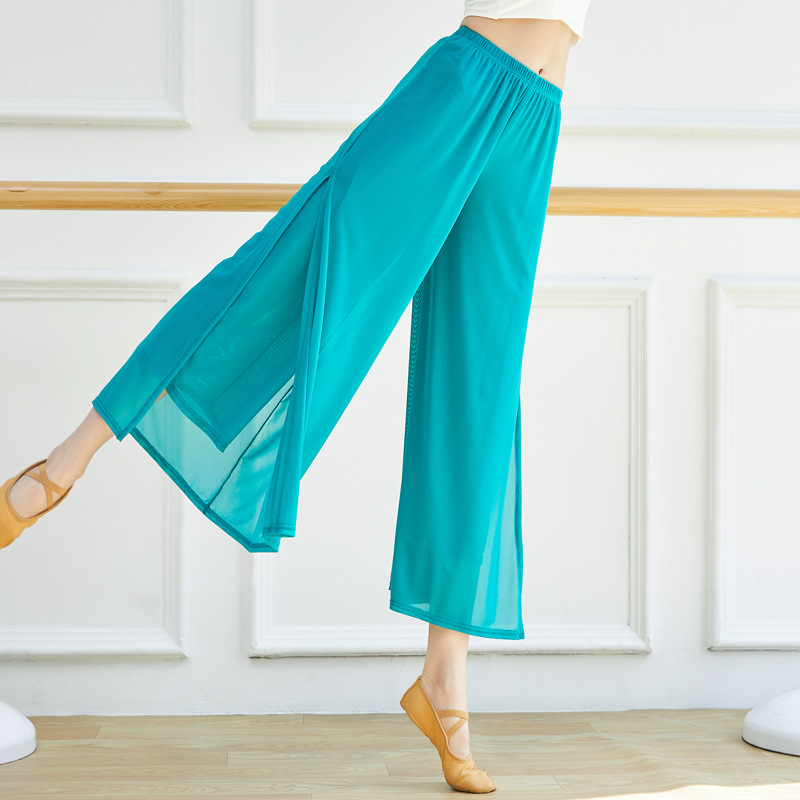 古典民族舞飄帶雪紡闊腿褲女成人寬松開叉舞蹈褲中國現代舞演出褲