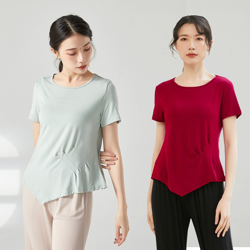 成人古典現代舞蹈形體訓練功服裝莫代爾寬松成人短袖瑜伽上衣共妍
