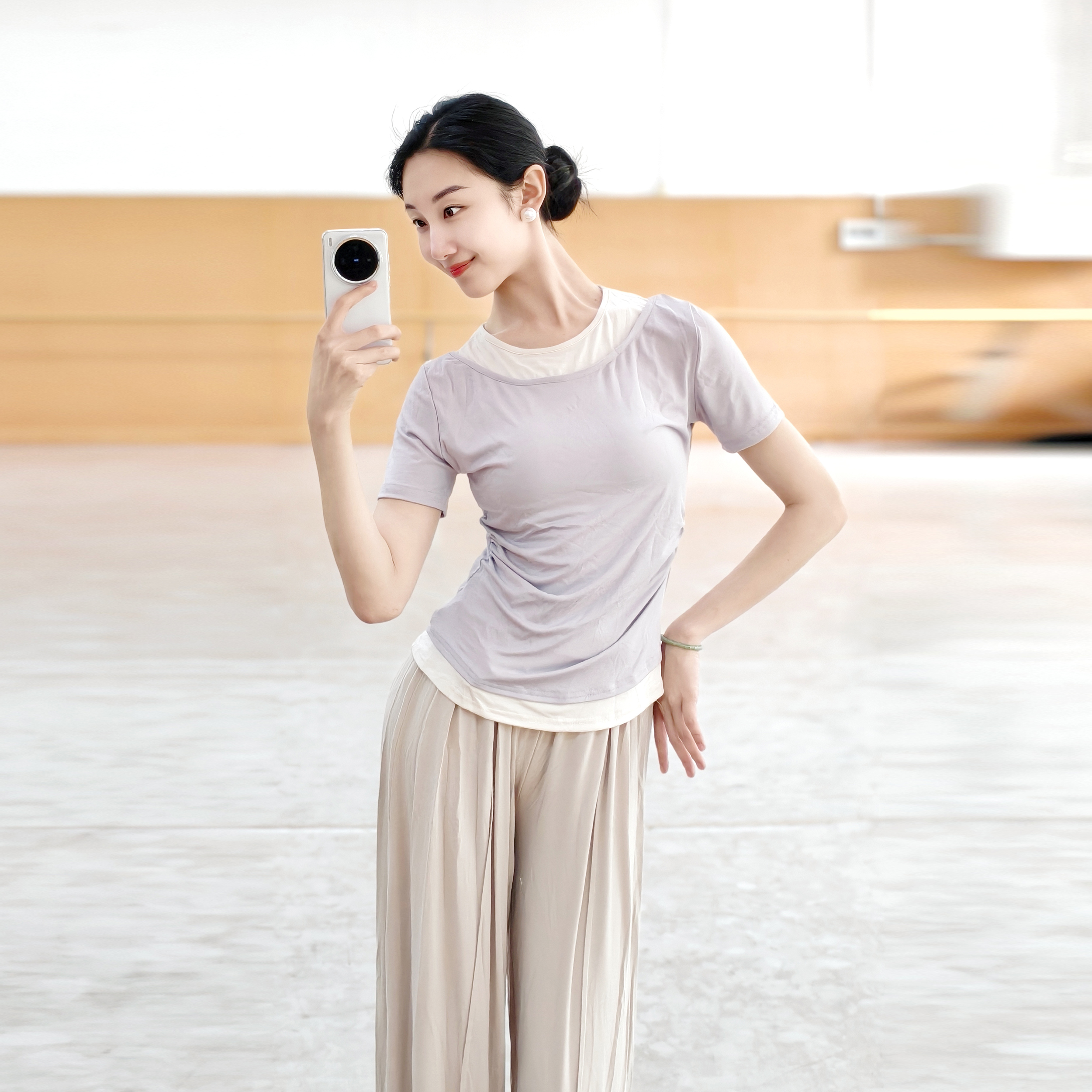現代舞假兩件短袖上衣女舞蹈服中國古典舞形體練功服裝瑜伽芭蕾舞