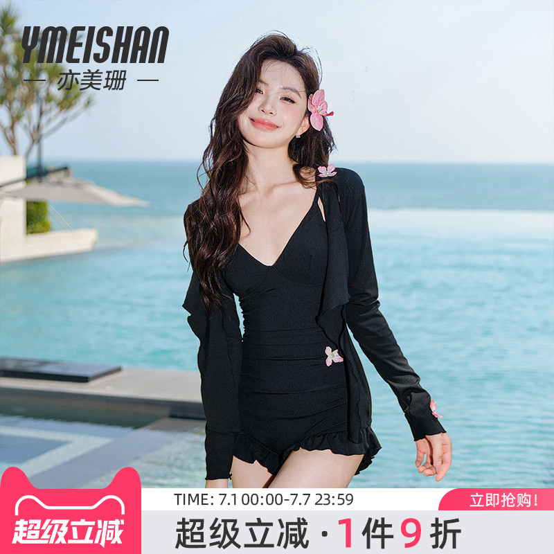 亦美珊長袖泳衣女泡溫泉連體微胖遮肉立體花瓣兩件高級感2025新款