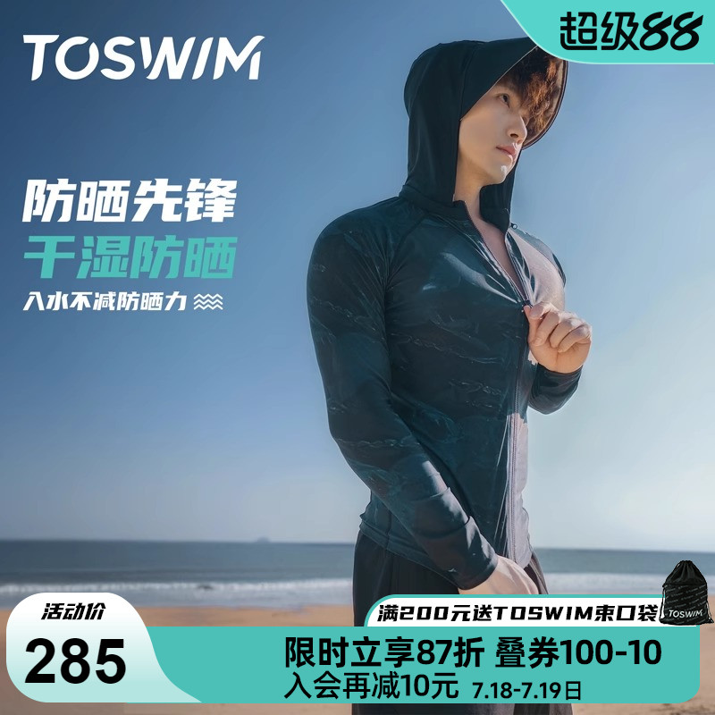 TOSWIM泳衣男款游泳裝備泳褲泳帽泳鏡三件套防曬長袖長褲潛水沖浪