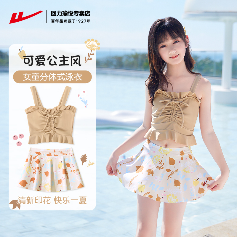 回力兒童泳衣女童初中生2025新款中大童分體裙式游泳衣可愛女孩