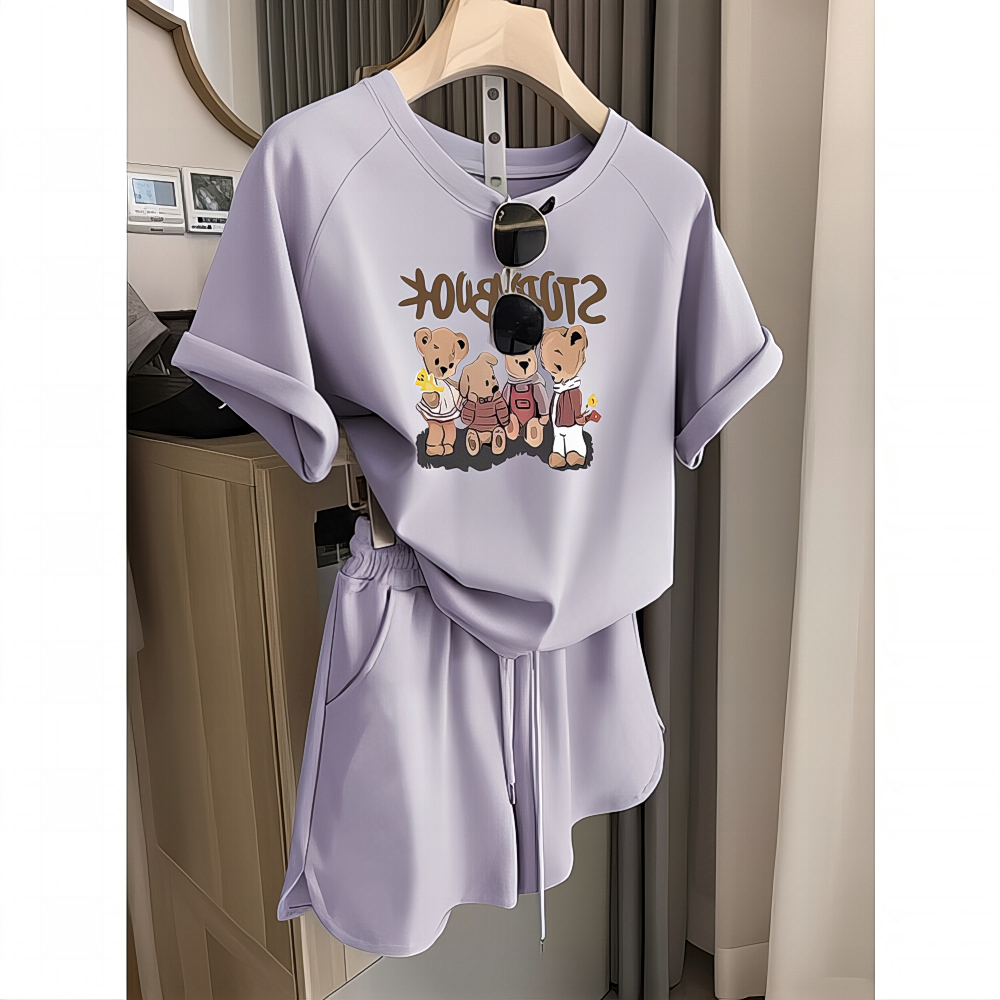 休閑卡通短袖短褲兩件套季新款兒童夏季【親子裝】2025夏圓領小狗