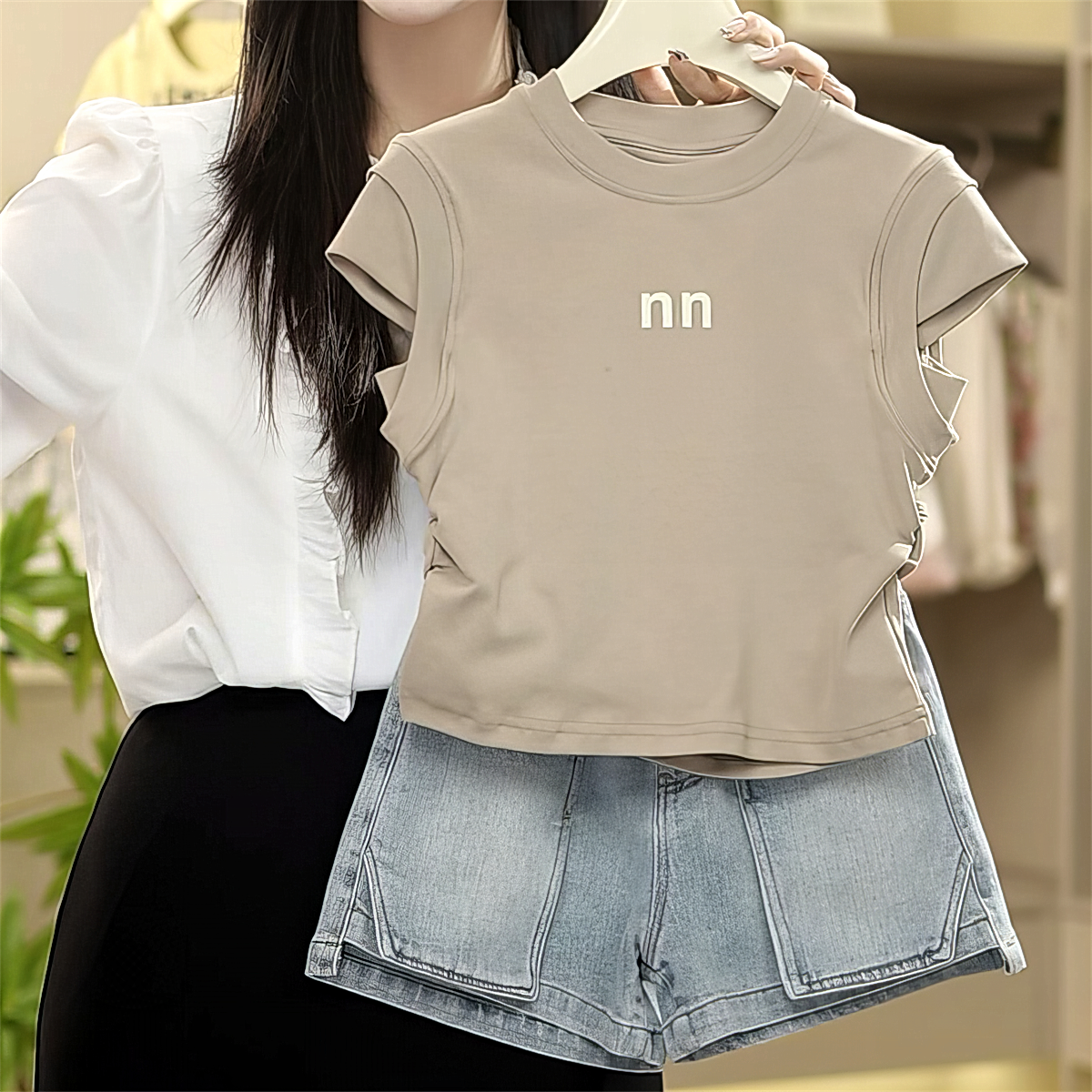 夏季純色CZ洋-SP219347O小童2024寶新款款兩件套薄字母男女