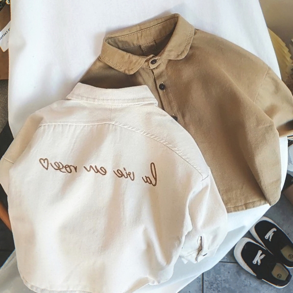 春秋款中小童刺繡百搭男童棉布襯衫襯衣襯衫2023春季新款上衣服潮