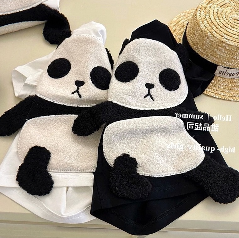 可愛卡通童男童女童寶寶上立體小熊貓半袖衣服T恤短袖兒衣夏季ins
