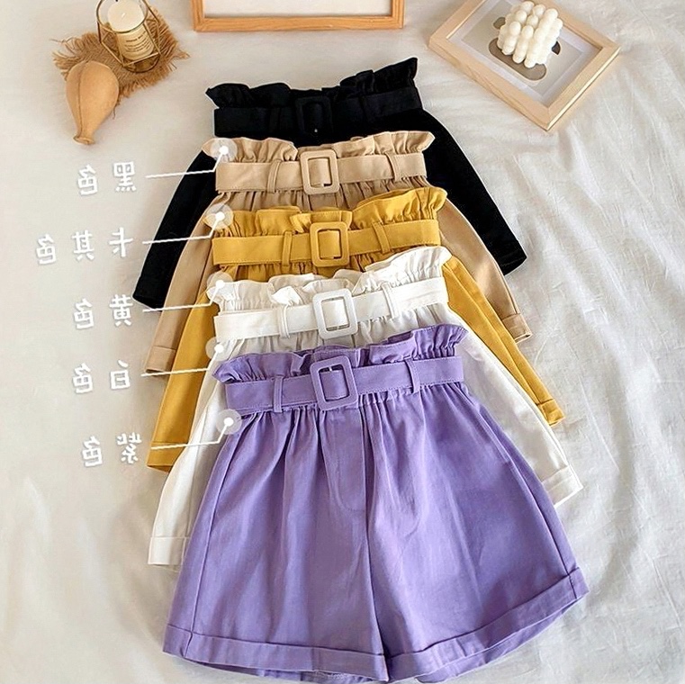 男女1童2純棉大口袋純色休閑短褲糖果色韓版褲薄款寬松熱褲夏季