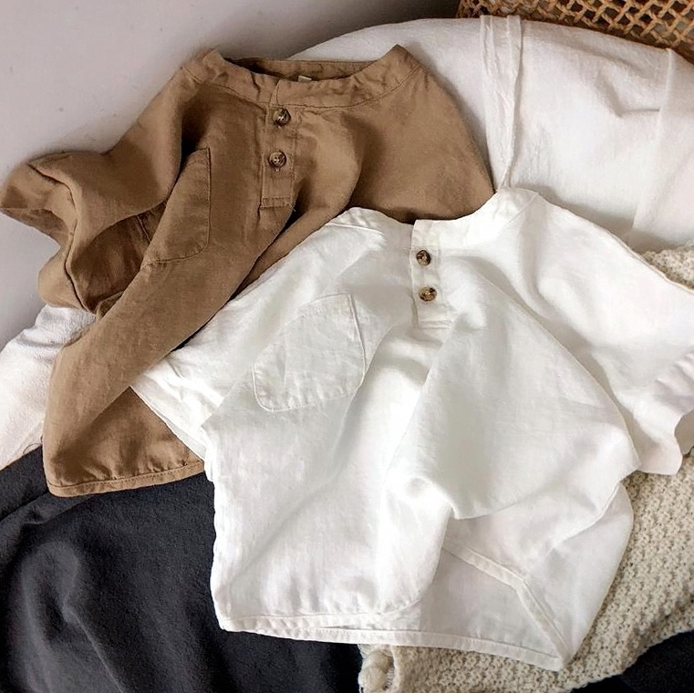 細節領襯衫男女小童寬松短感滿分韓國童廓形棉圓袖文藝范上衣