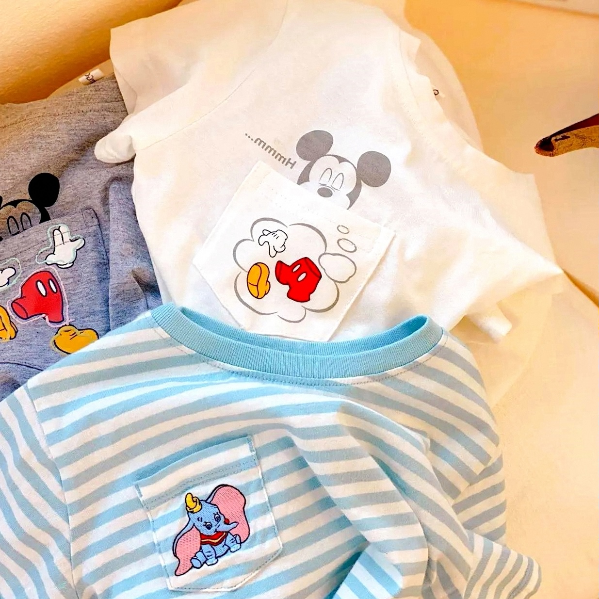 兒童卡寶純棉條紋短袖百搭通T恤2023夏季裝新款男女寶老鼠上衣潮