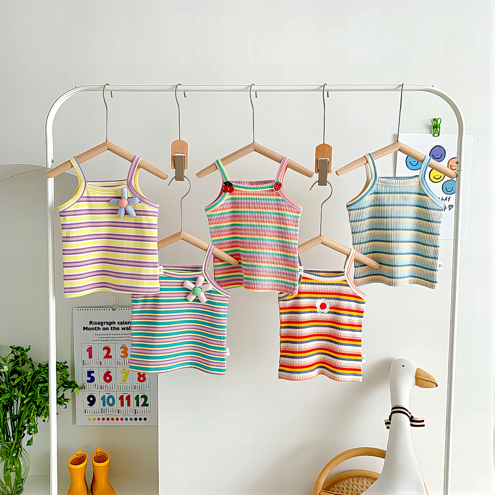 季彩T恤兒童夏裝韓版潮虹嬰兒無袖上衣夏條背心薄款女寶寶吊帶衫