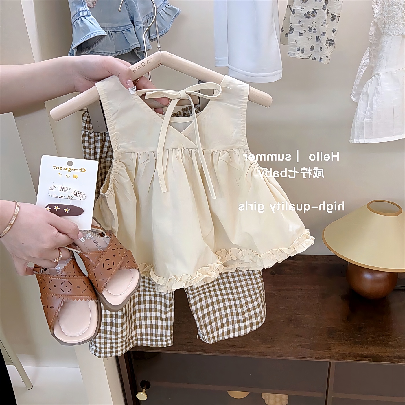 套兒童韓版夏裝褲套裝夏女童無袖背心短件季2025新款洋氣牛仔褲兩