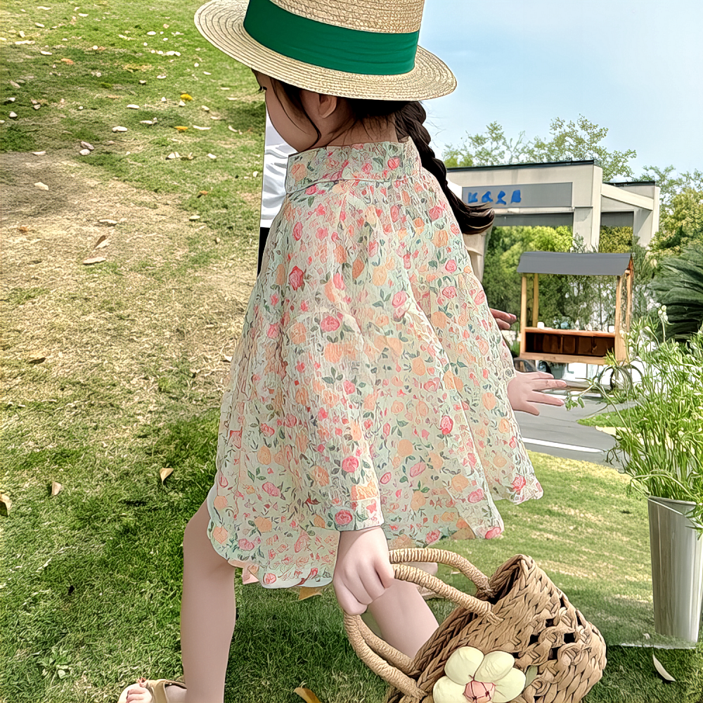女尚洋氣2025新款童夏季新款寶寶連衣裙高級兒童綿綢花朵連衣裙時