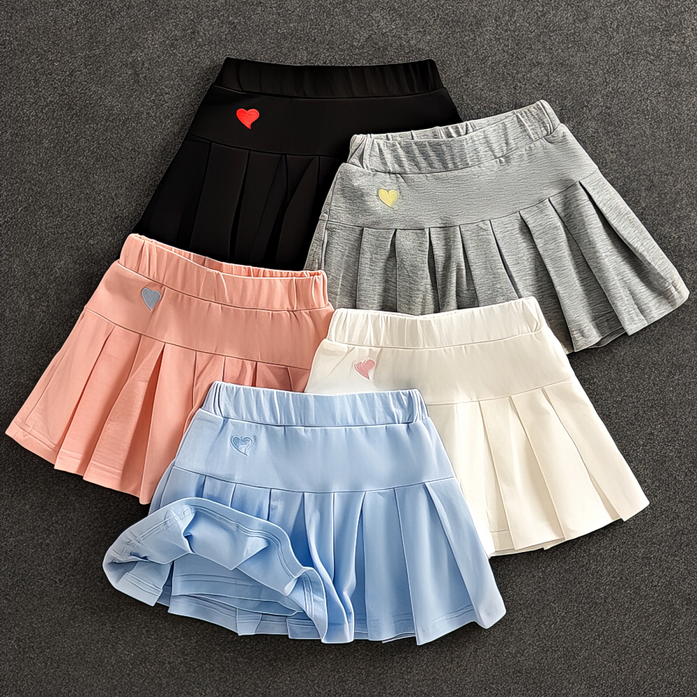 半身裙 中大童裙褲 兒漂亮百搭百褶 女童薄款童純棉裙子 帶安全褲