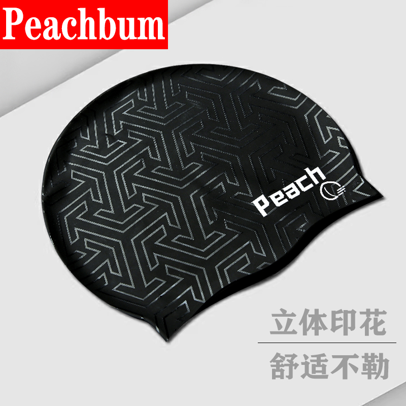Peachbum泳帽時尚立體印花男女通用不勒頭專業訓練護耳硅膠游泳帽