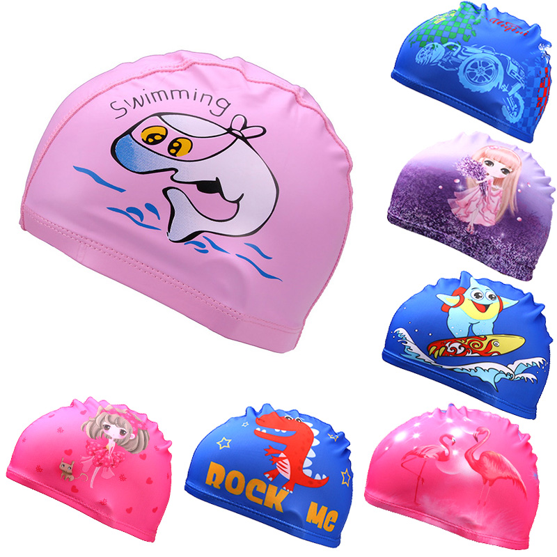 兒童泳帽卡通可愛印花獨角獸防水舒適硅膠不勒頭男童女童專業泳帽