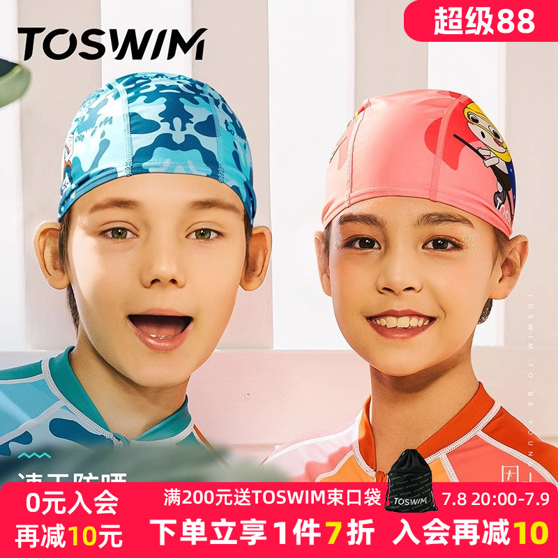 TOSWIM可愛舒適泳帽布料男童女童游泳館專用時尚卡通寶寶防滑