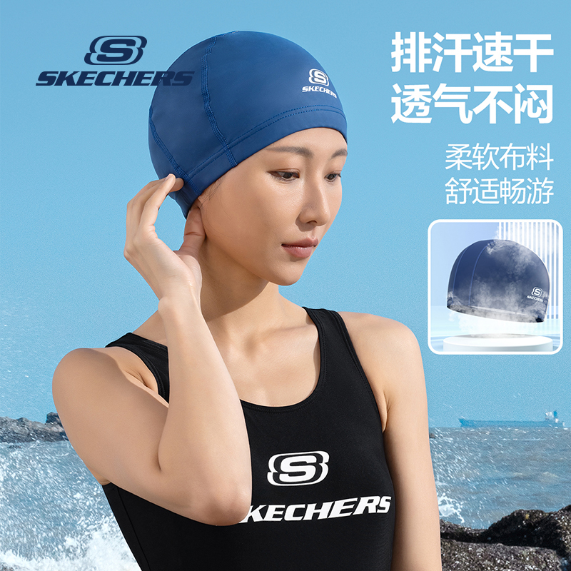 skechers斯凱奇官方男女泳帽不勒頭純色成人款游泳裝備通用帽子