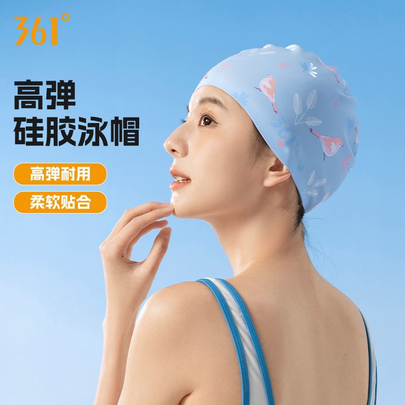 TOSWIM游泳帽女防水不勒頭長發加大頭圍時尚印花色硅膠款帽子女士