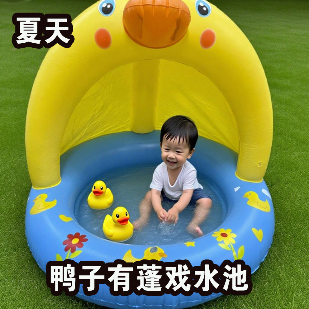 小黃鴨游泳池兒童充氣加厚噴水池遮陽浴盆夏季戶外波波池戲水玩具