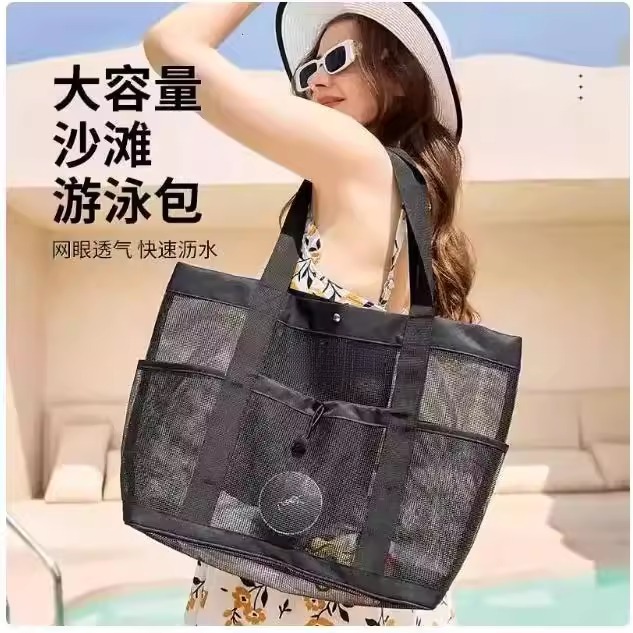 沙灘游泳包手提網兜包便攜式大容量泳衣收納袋健身運動單肩包網眼