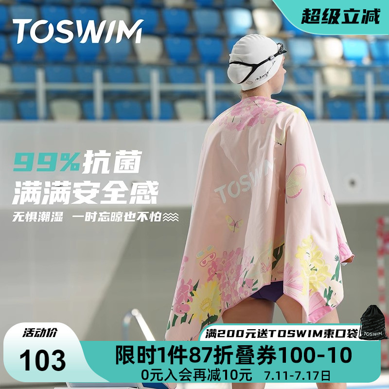 TOSWIM游泳浴巾女速干毛巾海邊防曬沙灘吸水巾便攜健身浴袍斗篷