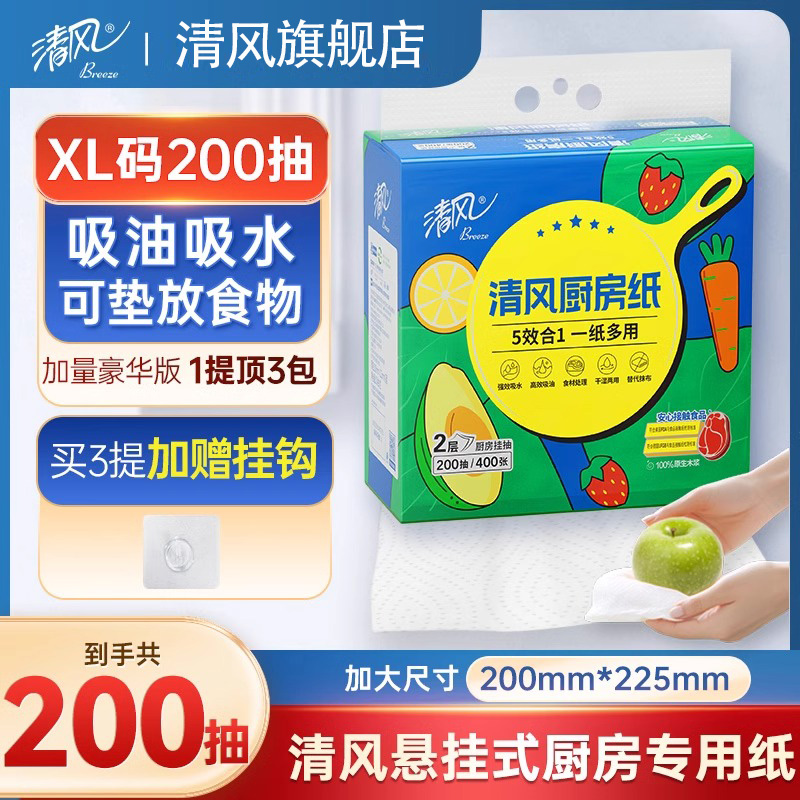 【下拉享優惠】清風廚房懸掛抽紙200抽吸油紙吸水紙廚房專用紙巾