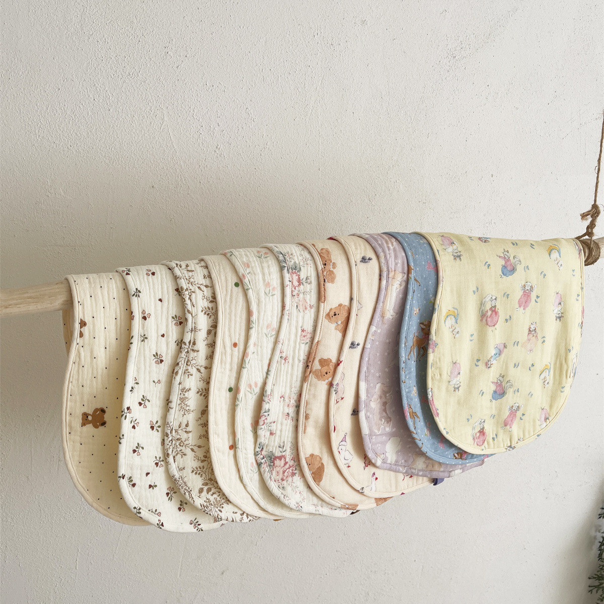 嬰幼兒圍嘴寶寶口水巾六層縐布紗布嬰兒圍兜新生兒童防吐奶飯兜