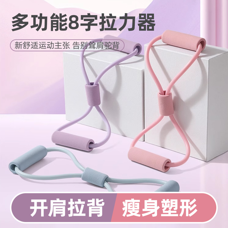 8字多功能拉力器女家用健身帶瑜伽肩部拉伸器減肥運動塑身腰腹帶