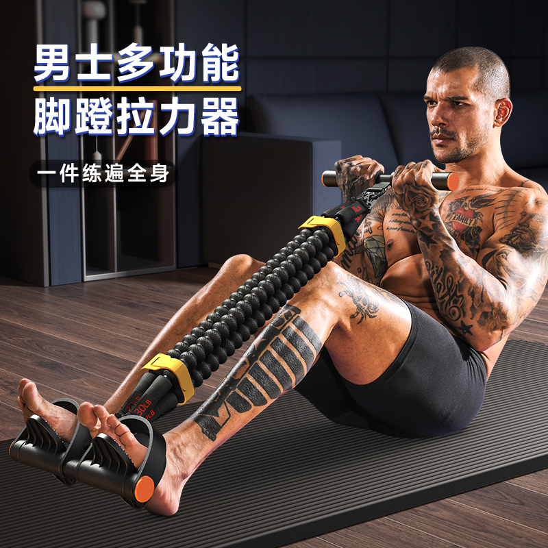 男士腳蹬拉力器多功能瘦肚子神器健身器材家用腹肌訓練伸卷拉力繩