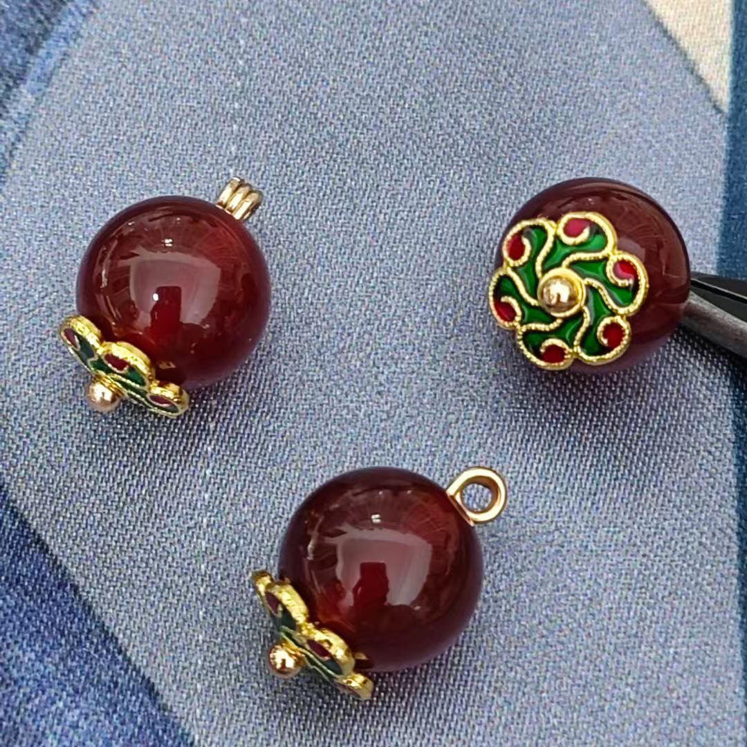 10mm12mm深紅瑪瑙圓珠紐扣新中式國風旗袍馬甲唐裝漢服宋錦扣子