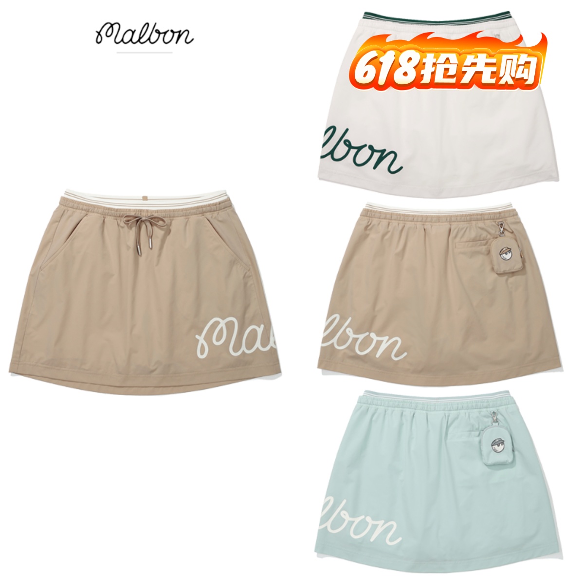 2025韓國MALBON高爾夫服裝夏季女款短裙松緊腰運動輕感帶球袋短裙