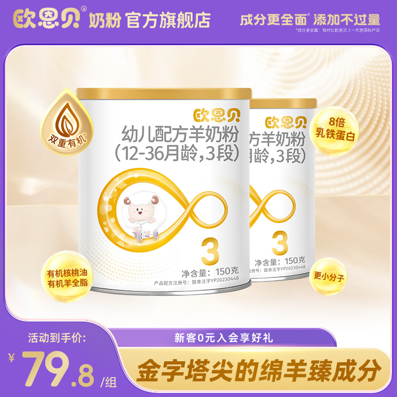 歐恩貝旗艦店綿羊奶3段嬰兒配方奶粉150g*2罐試用裝小罐裝