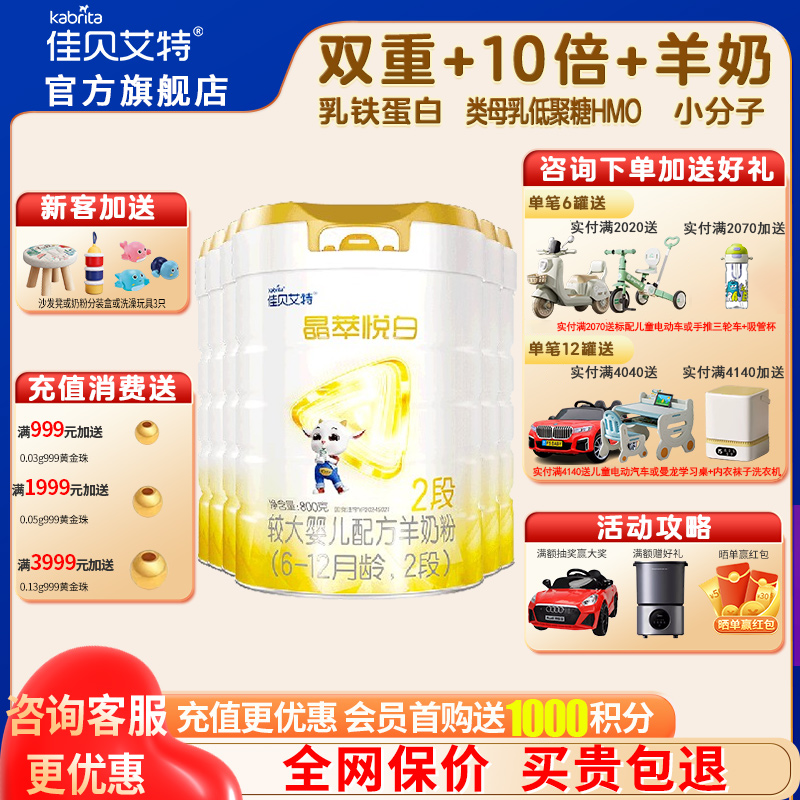 佳貝艾特晶萃悅白2段6罐800g奶粉旗艦店嬰幼兒配方二段羊奶粉正品