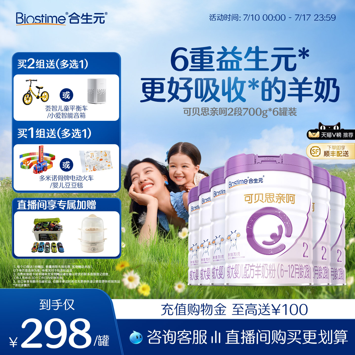 合生元可貝思親呵新國標較大嬰兒羊奶粉2段700g6罐100%純羊乳蛋白