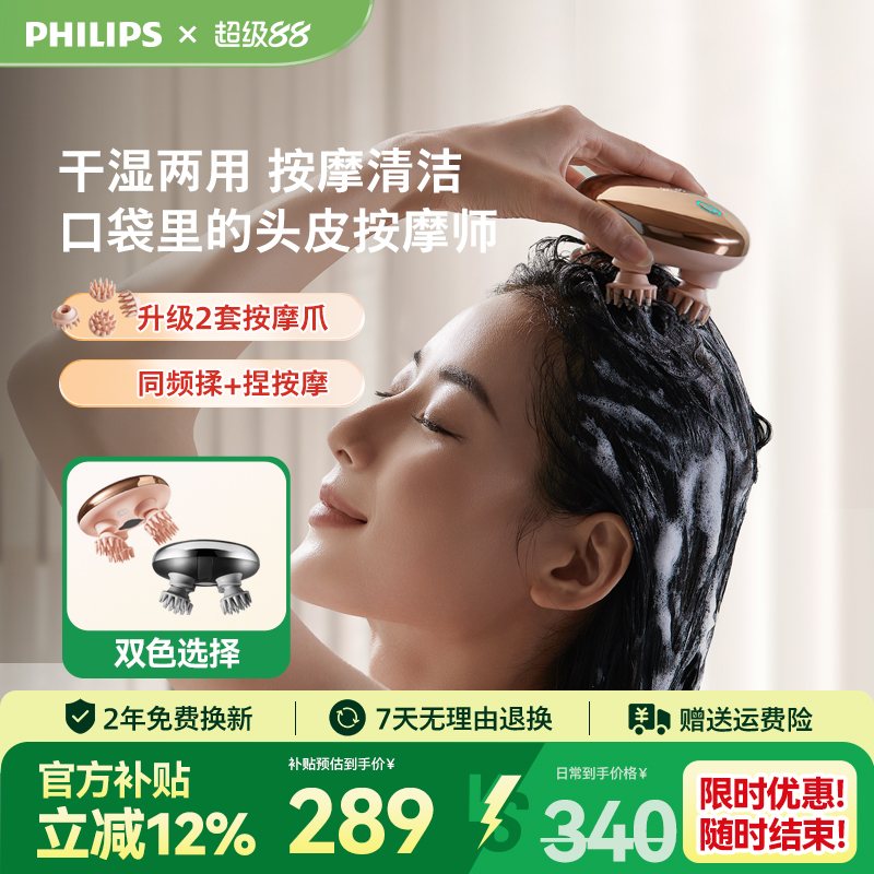 飛利浦頭部按摩器頭皮按摩爪按摩儀撓抓頭家用電動揉捏生日禮物女