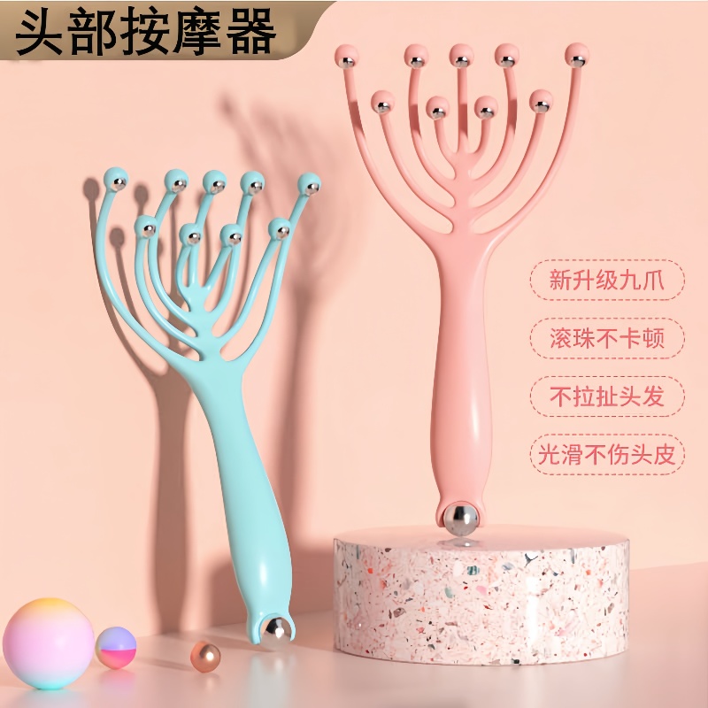 九爪頭部按摩器八爪魚頭皮放松神器經絡疏通撓頭梳五爪滾珠按摩器