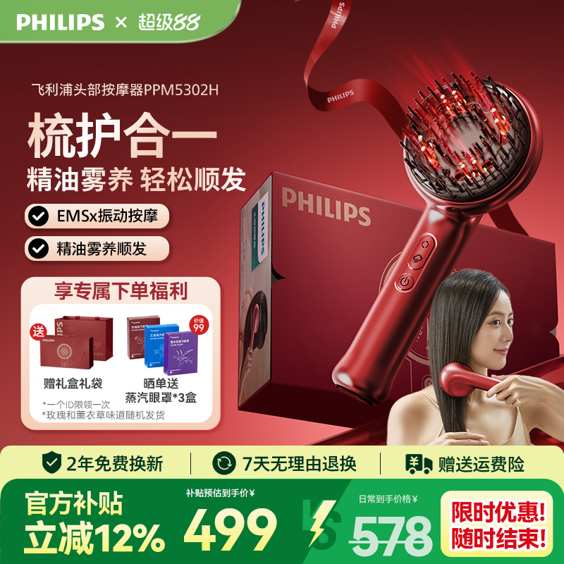 飛利浦按摩梳護發小紅梳頭部按摩儀器頭皮電動按摩養發男女生禮物