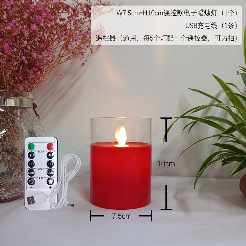 紅色一體式玻璃充電電子蠟燭燈氛圍燈婚禮布置火焰搖擺透明玻璃