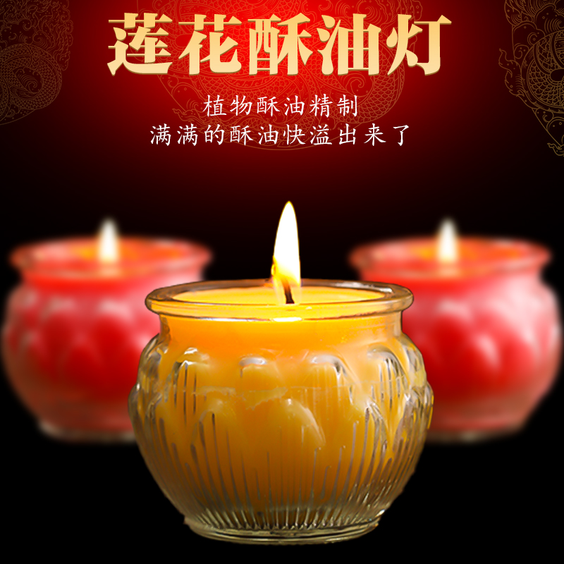 酥油燈酥油24小時蓮花供燈無煙玻璃蠟燭佛前長明廠家直銷供佛燈