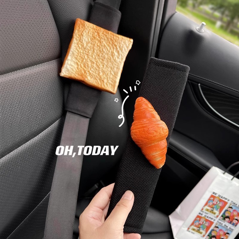 慢回彈捏捏樂面包汽車安全帶護肩套治愈系可愛解壓神器車載裝飾品