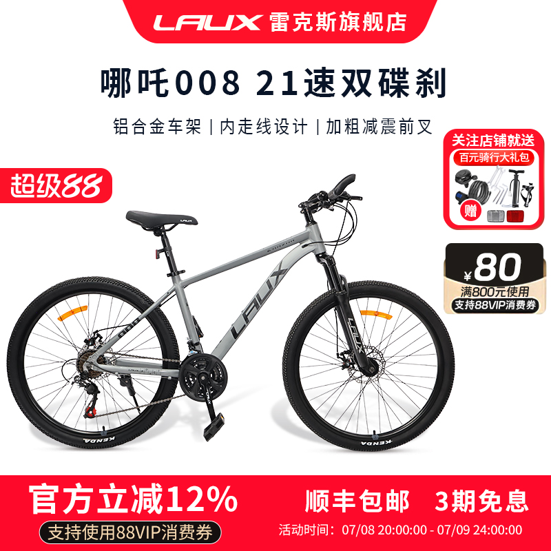 雷克斯LAUX哪吒008山地車成人學生代步通勤鋁合金內走線21速單車