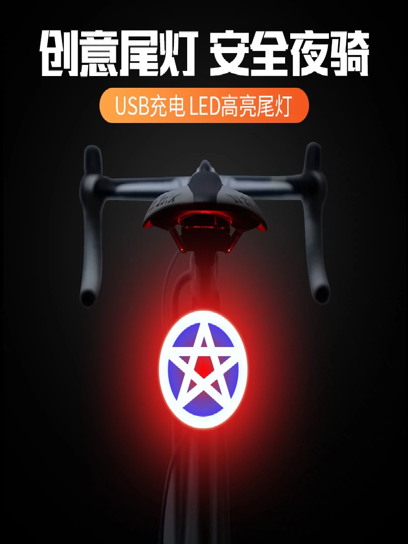 自行車星座尾燈高亮創意USB充電夜騎山地車燈公路車騎行裝備配件