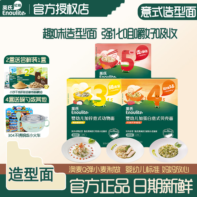 英氏蝴蝶面嬰兒彩蝶面寶寶一歲輔食面條軟糯寬面動物造型小面片