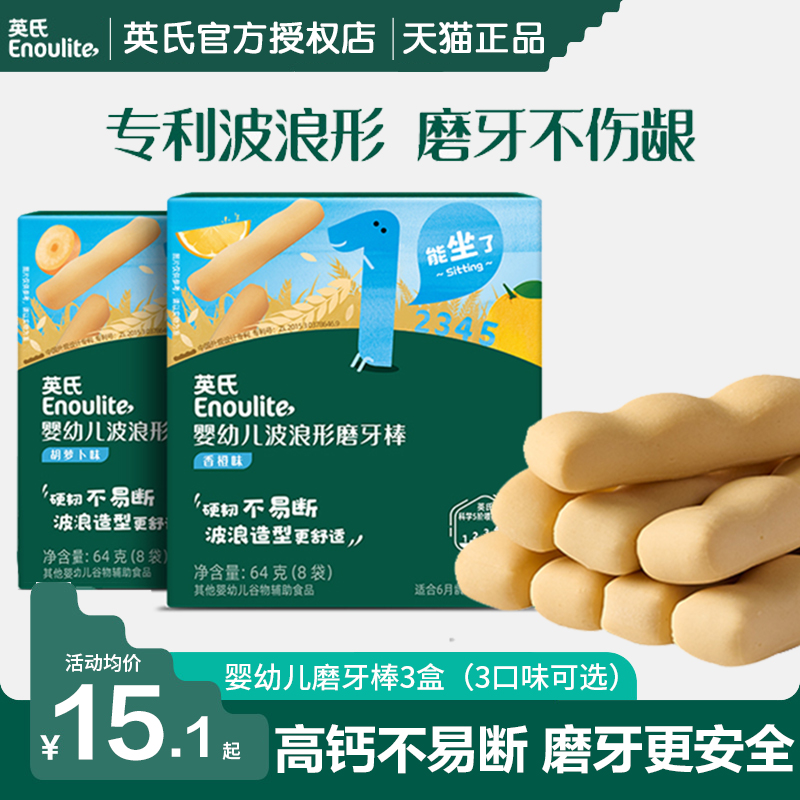 英氏嬰幼兒磨牙棒寶寶輔食 零食磨牙硬餅干高鈣營養無添加鹽6個月