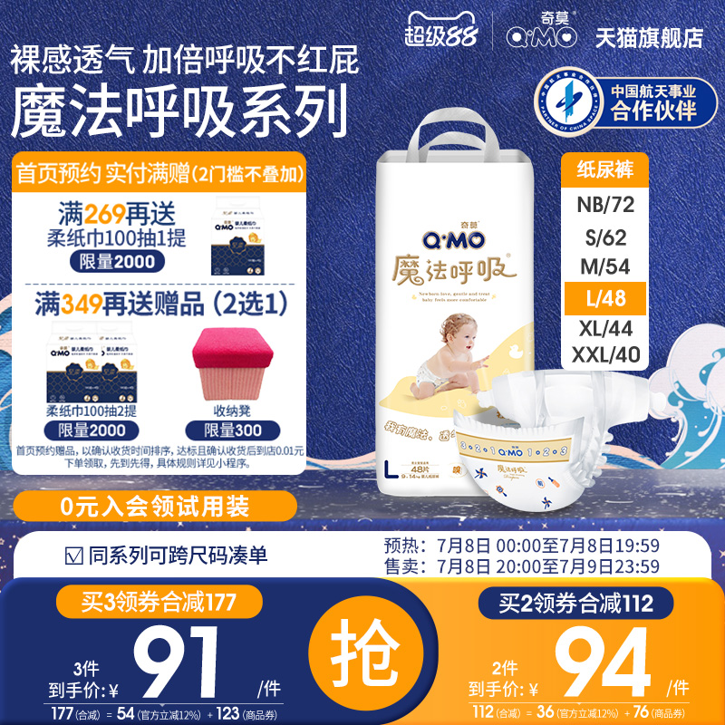 奇莫魔法呼吸紙尿褲NB-2XL尺碼任選尿不濕超薄透氣柔軟防漏嬰兒