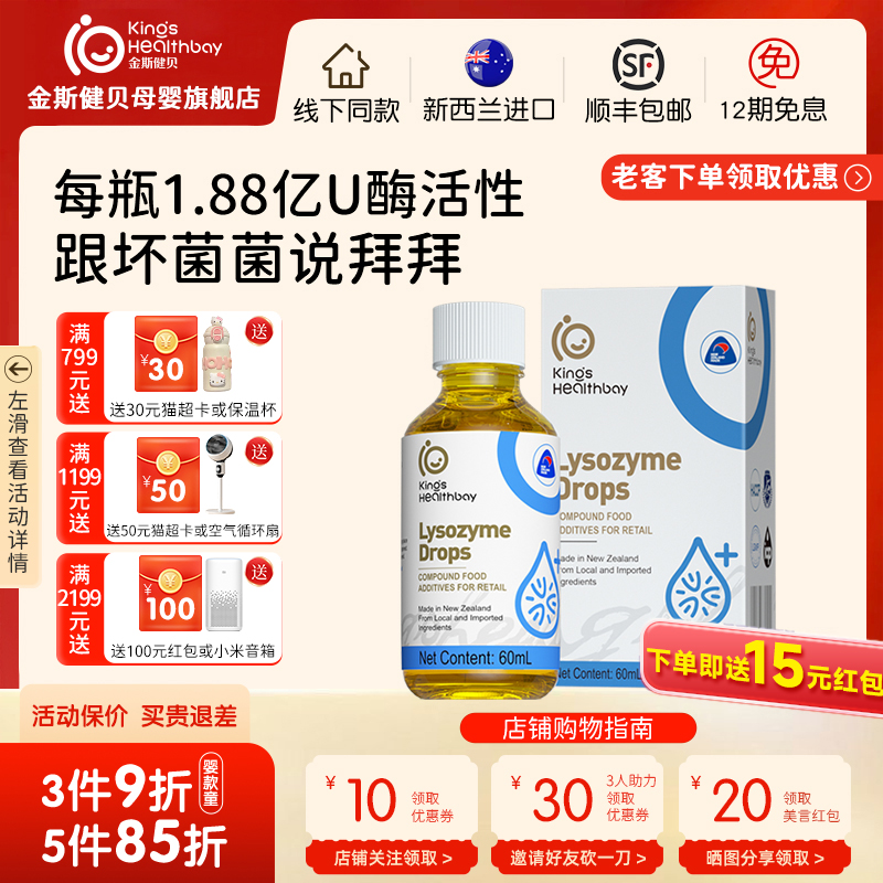 金斯健貝溶菌酶滴劑旗艦店復配酶60ml/1瓶