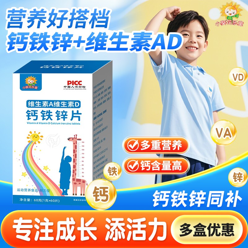成長助力維生素A維生素D鈣鐵鋅片60g/每瓶青少年兒童營養咀嚼片
