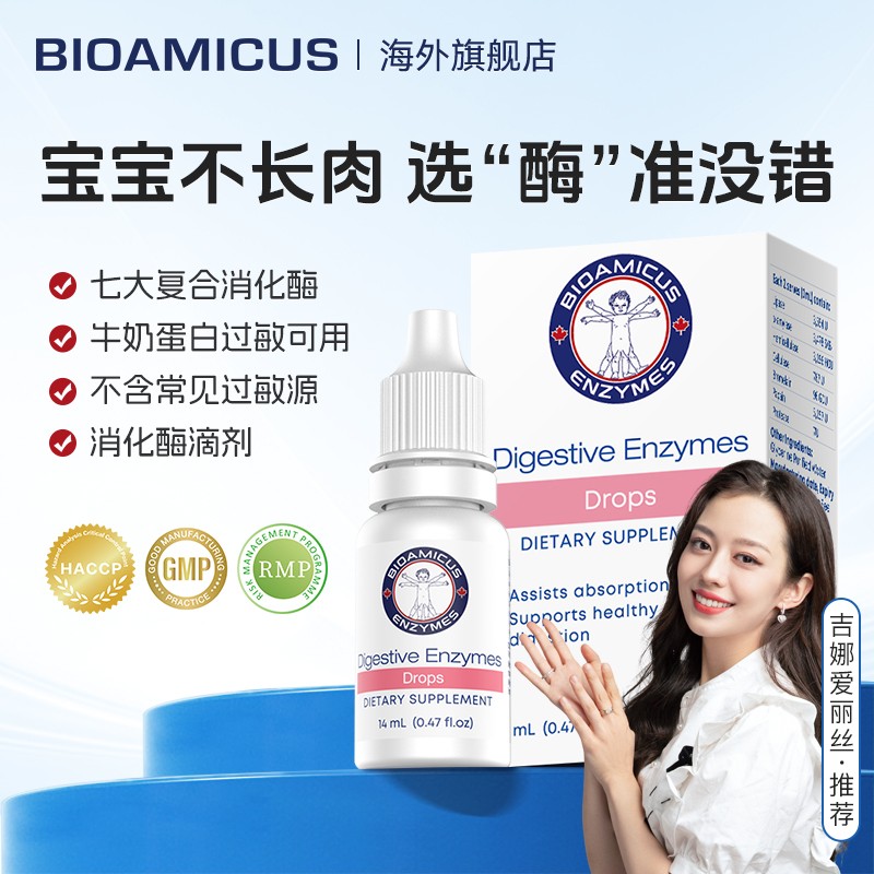 BIOAMICUS達人專享百適滴消化酶滴劑嬰幼兒童進口復合酶蛋白酶